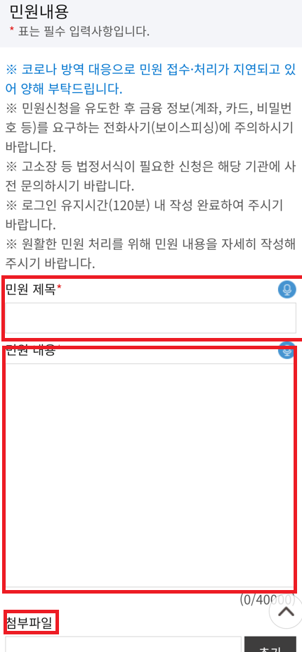 2. 아래에 민원신청에 대해서 작성해주세요.